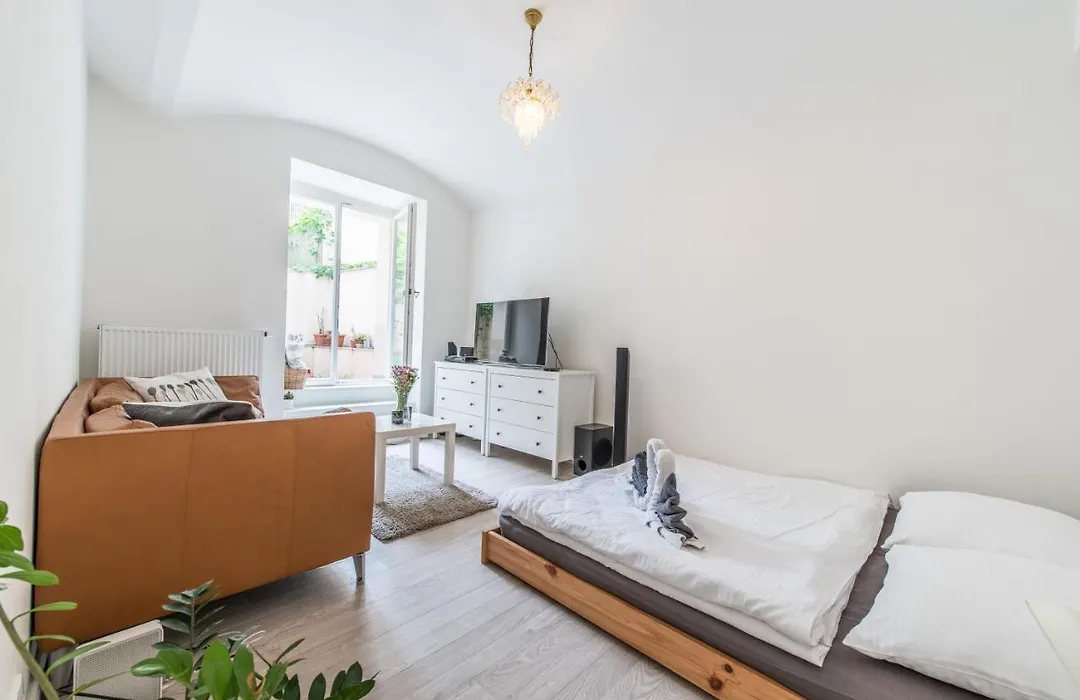 This 40 m² apartment is situated 2.3 km from the Rudolfinum and within a few blocks of the gehry-designed Dancing House Tower. 1-room Quiet Apartment In The City Center With Own Terrace is within a 400-metre distance of Anděl underground station and a 10-minute drive from the Old Town Square.